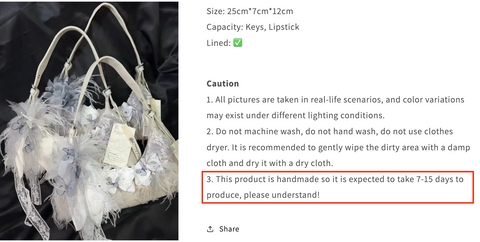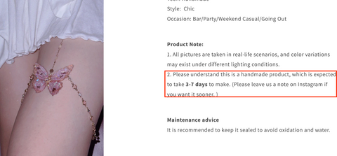 Regarding shipping, the scale and products of our collaborating original brands vary, and most of their designers handcraft the items. This results in different production times.