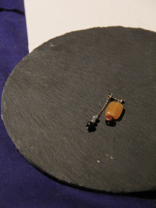 • 「Chinoiserie」Red Blue Lapis Lazuli Agate Earrings
