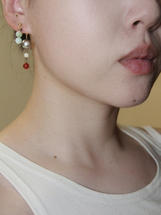 • 「Chinoiserie」Red Green Jade Beaded Hoop Earrings
