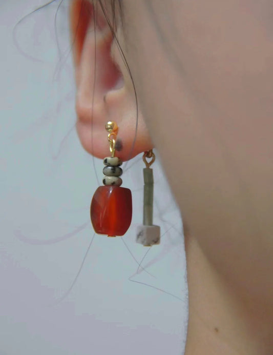 「Chinoiserie」Red Blue Lapis Lazuli Agate Earrings
