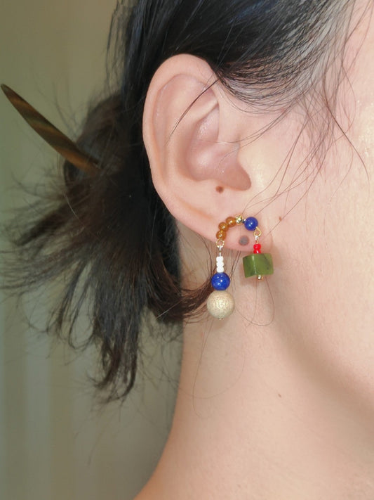 • 「Chinoiserie」Imperial Blue Natural Jade Sandalwood Beaded Earrings