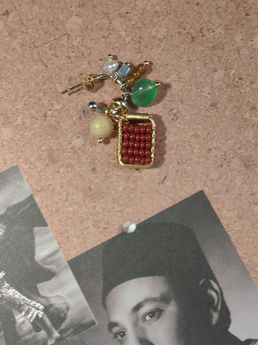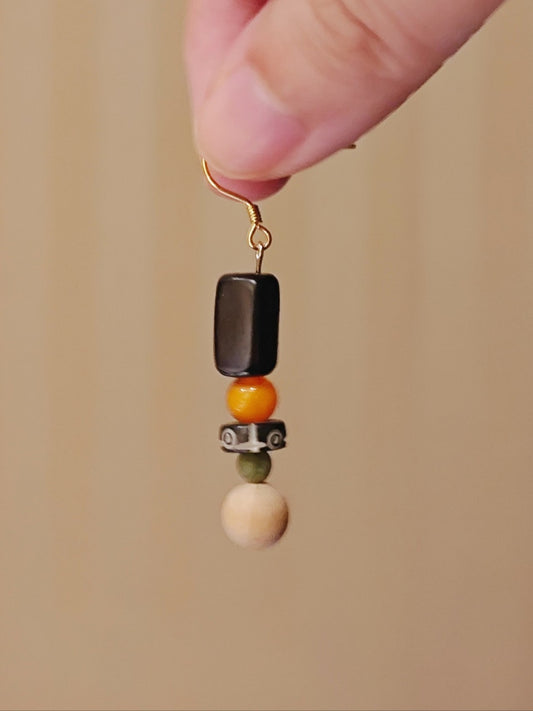 • 「Chinoiserie」Mini Abacus Natural Jade Sandalwood Beaded Earrings