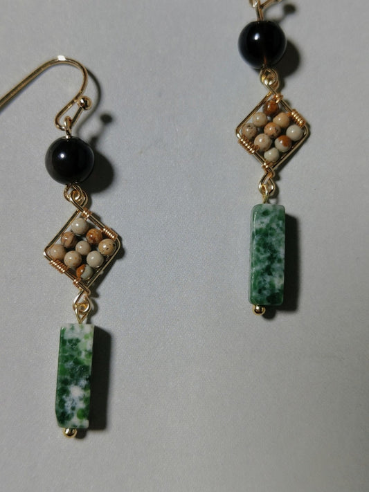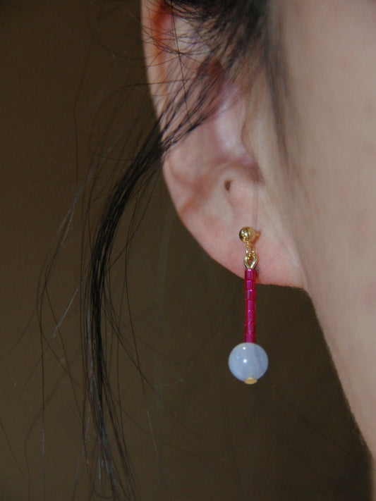 「Chinoiserie」Natural Jade Green Pink Beaded Drop Earrings