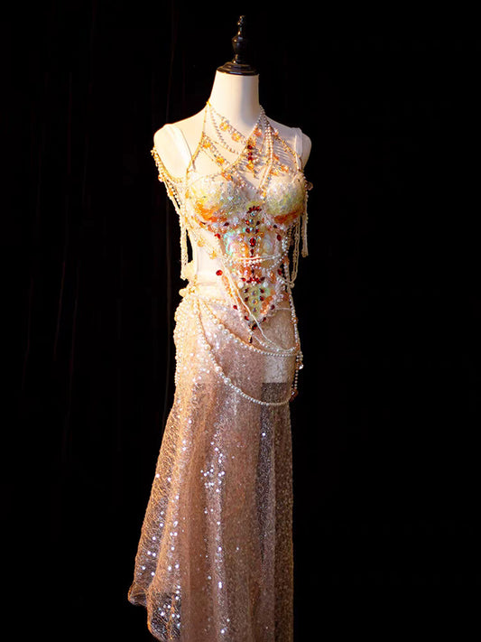 • Sunset Mermaid Princess Pearl Beaded Irredecent Bodice Set
