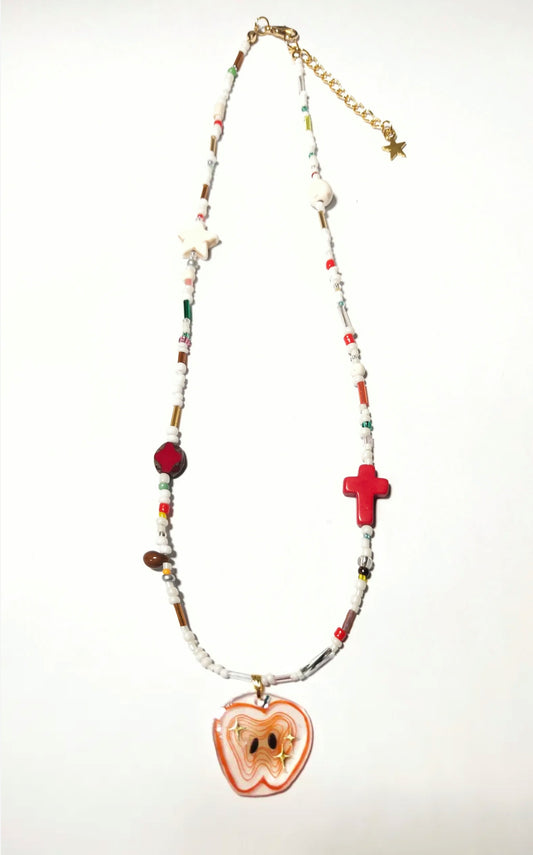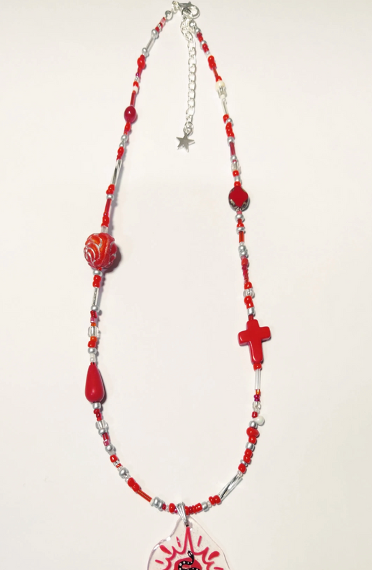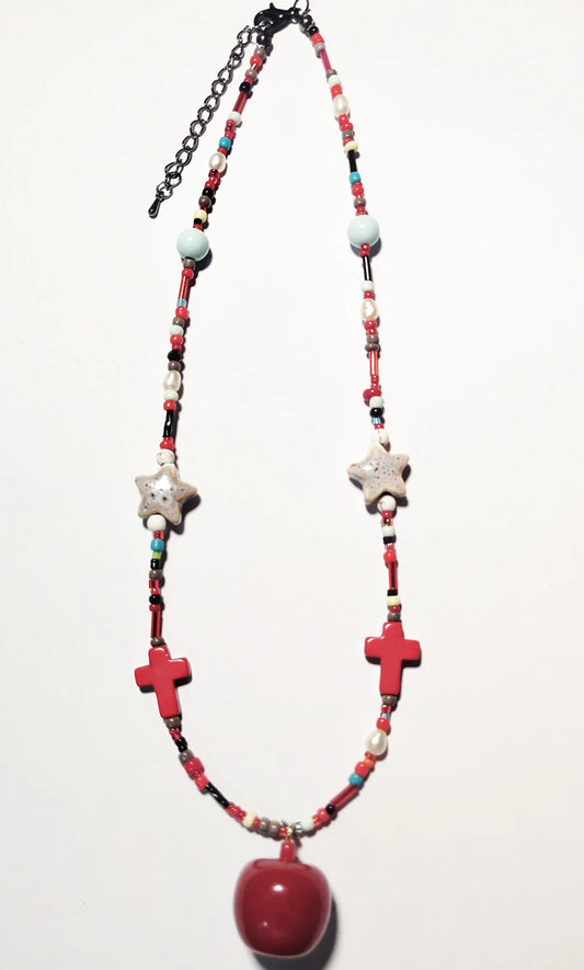 • Red Black Snake Shrink Plastic Charm Beaded Necklace