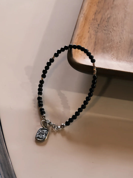 Chinoiserie Peace Talisman Black Onyx Beaded Bracelet