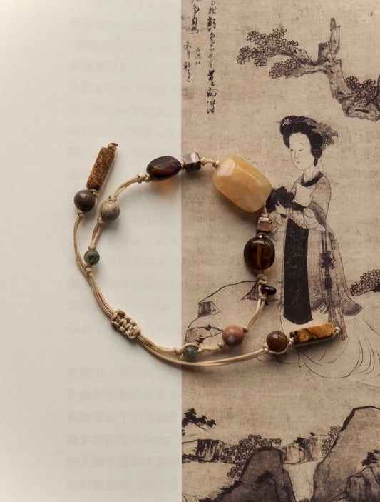 Five Blessings Silver Coins Braided Beaded Bracelet