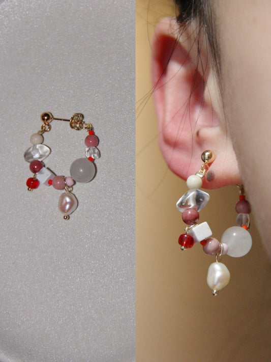 Black Pink Beaded Metal Earrings