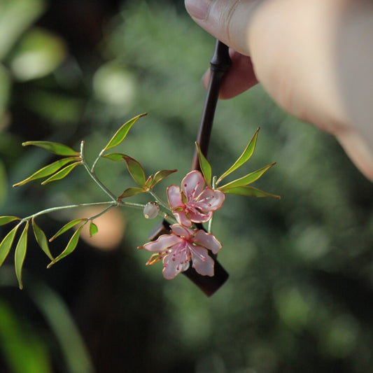 • 「 Chinoiserie」Peaches Blossom Bamboo Leaf Hairpin
