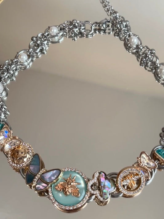 • Mint Blue Bee Button Choker