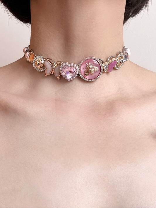 Romantic Pink Bee Button Choker