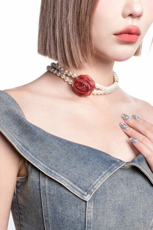 • Double Strand Pearl Rose Choker