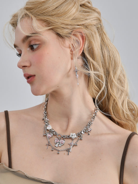 • Cross Pendant Stars Pearl Necklace