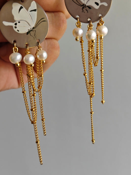 • Chinese Lacquer Autumn Butterfly Tassel Earrings