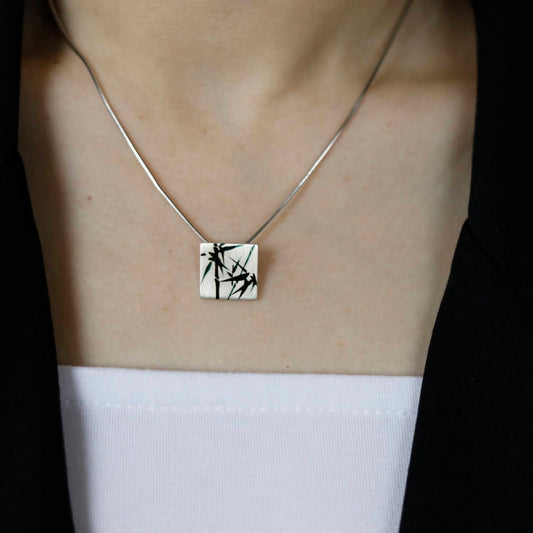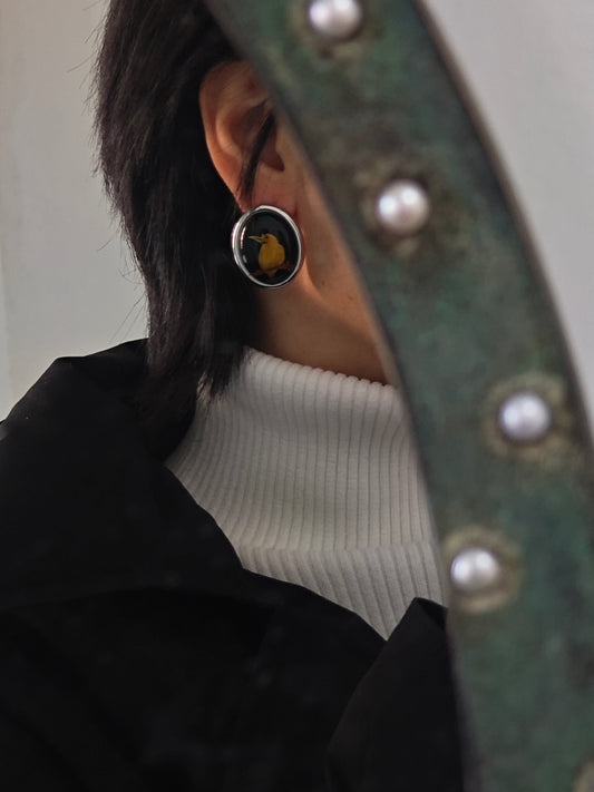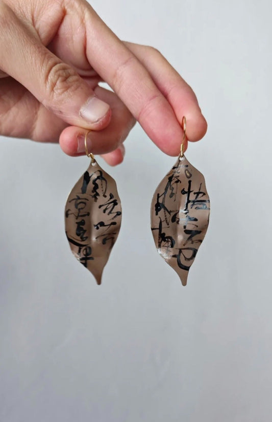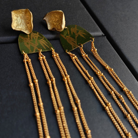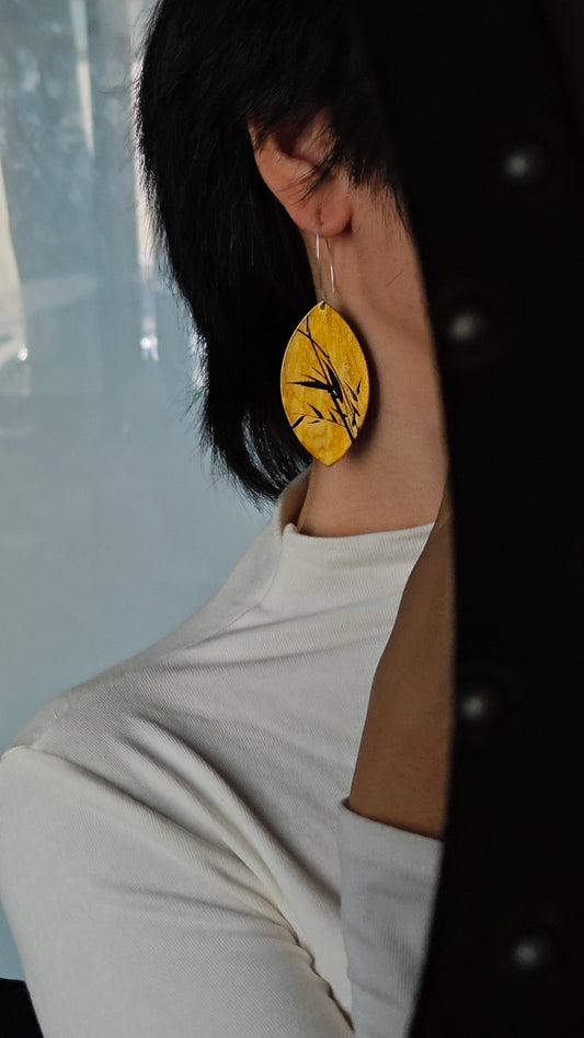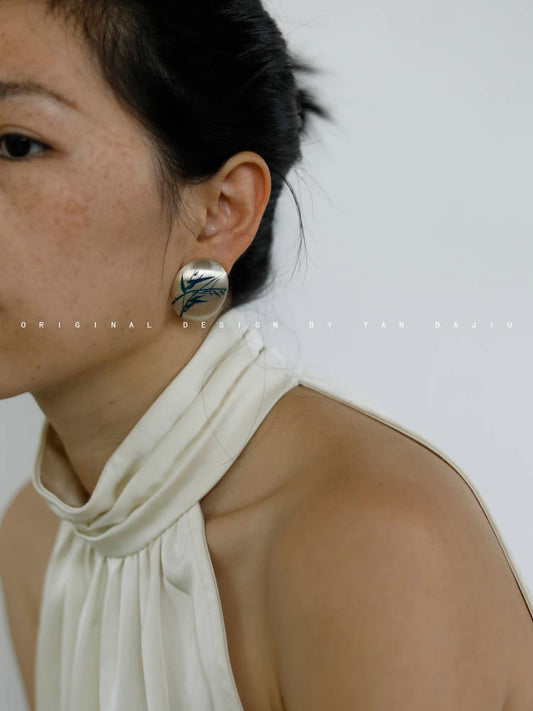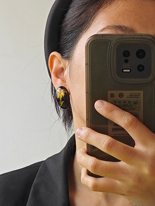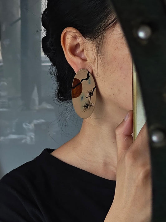 • Chinese Lacquer Pine Moon Earrings
