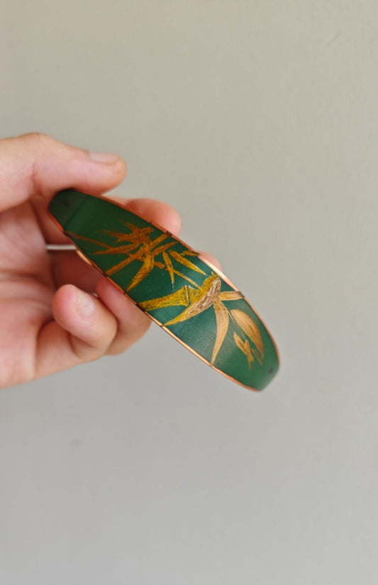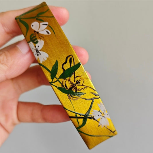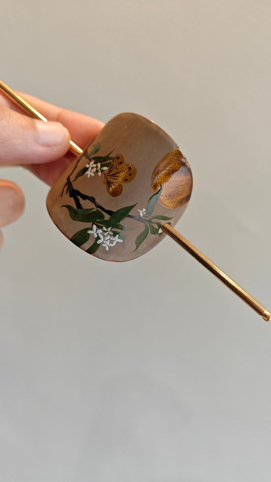 Chinese Lacquer Butterfly Flower Golden Hair Clip