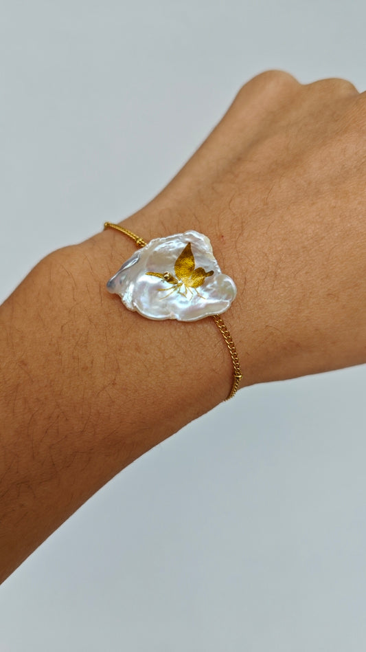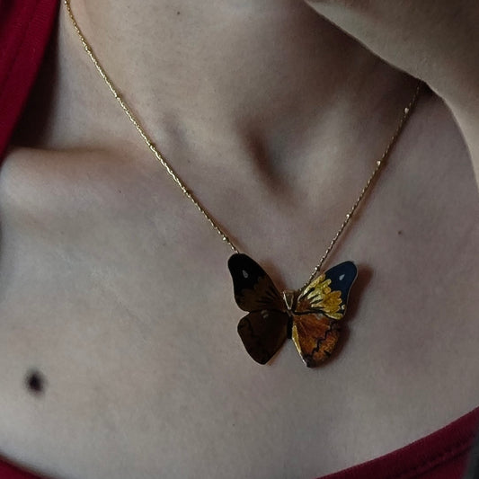 • Chinese Lacquer Golden Butterfly Necklace