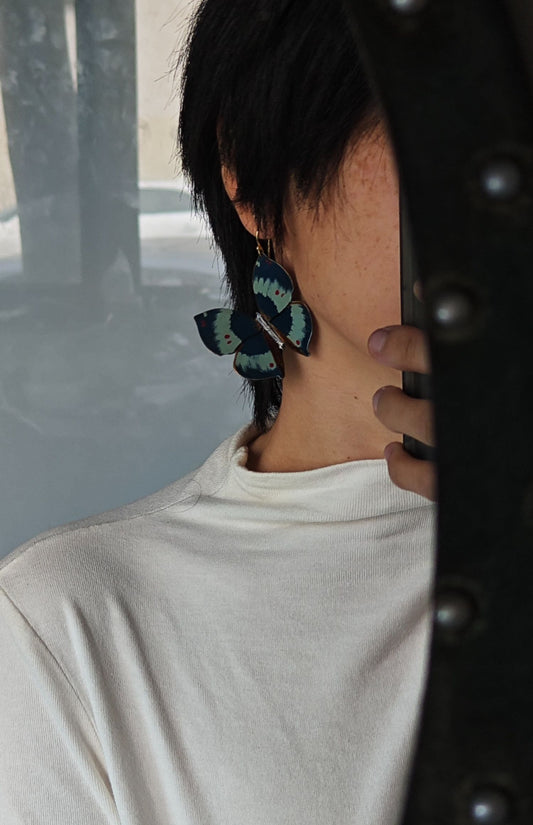 • Chinese Lacquer Blue Butterfly Earrings