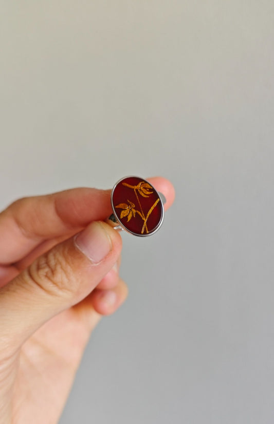 • Chinese Lacquer Flower Agate Open-end Ring