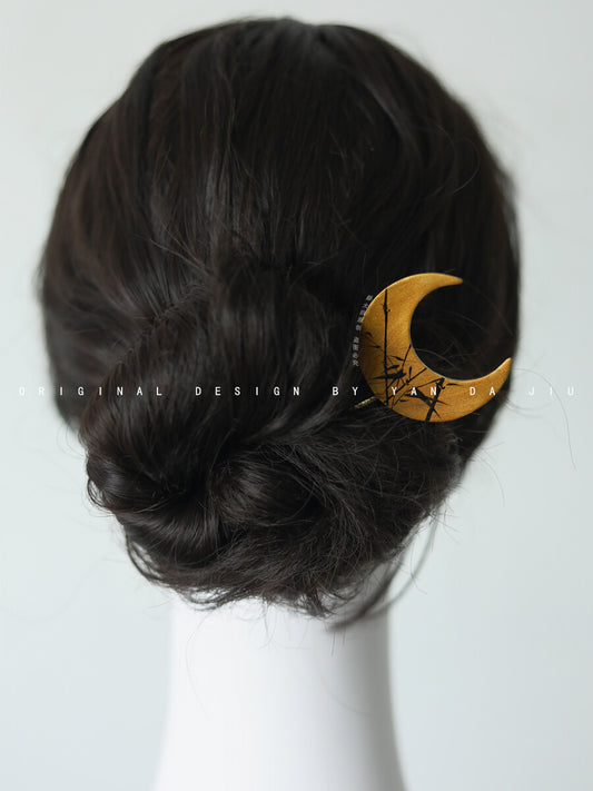 Chinese Lacquer Pine Moon Earrings