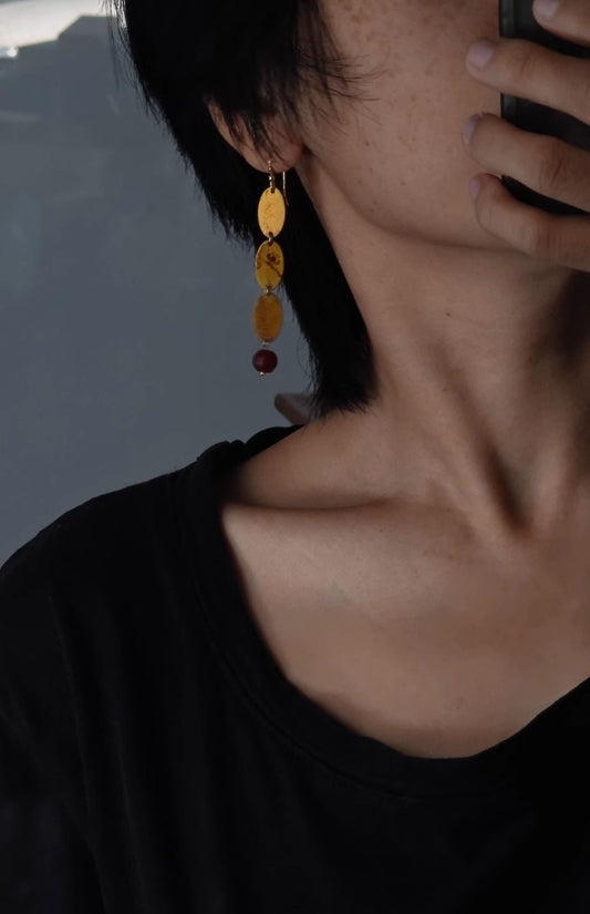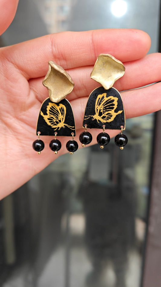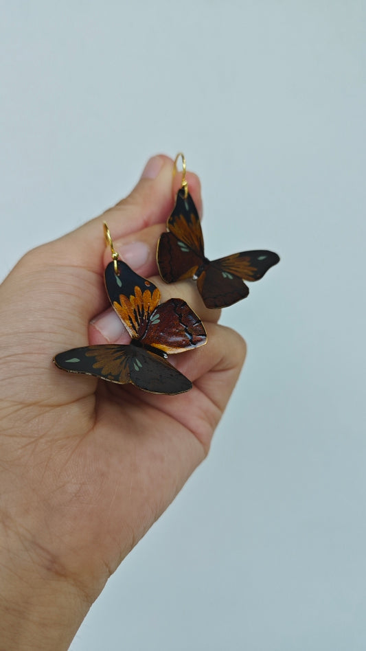 • Chinese Lacquer Golden Butterfly Earrings
