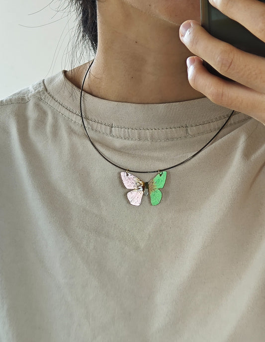 Chinese Lacquer Golden Butterfly Necklace