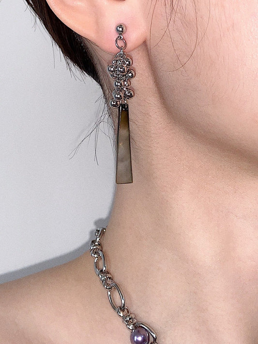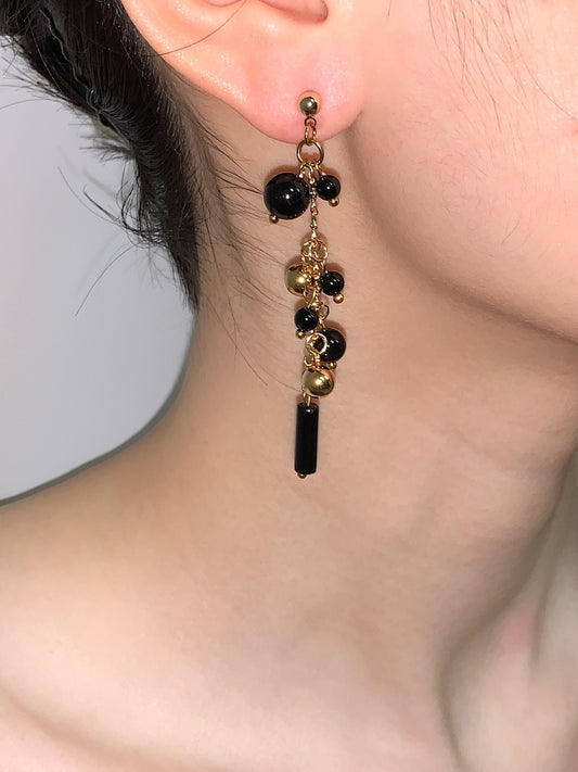 Black Pink Beaded Metal Earrings