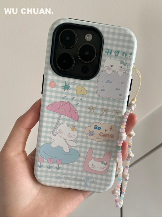 • Umbrella Kitten Plaid Printed Double Layer Phone Case