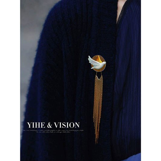 • Handmade Ceramic Bird Tassel Brooch