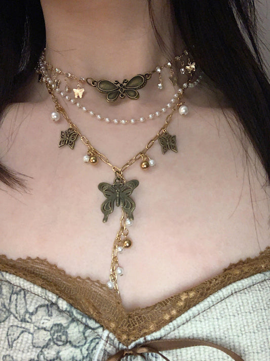 • Butterfly Pendant Layered Choker Necklace