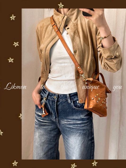 Vanwalk Farm Series Vintage Straps Plush Shoulder Bag