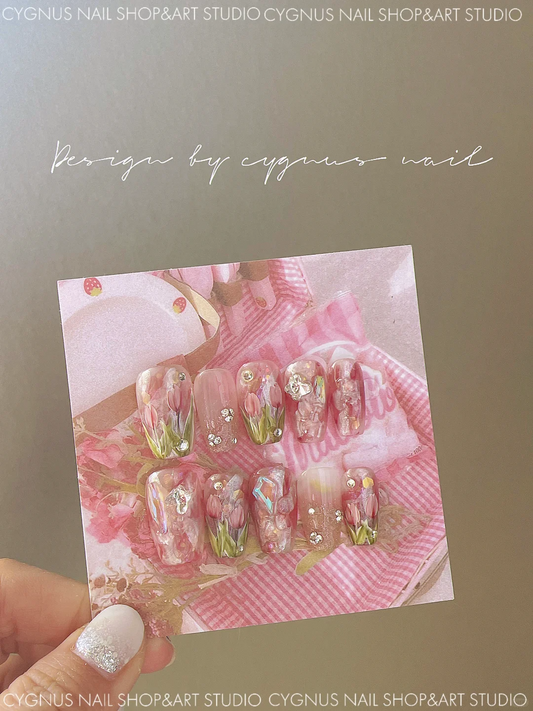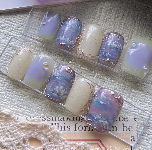 • Water Lily Hand Painted Press On Nails Set