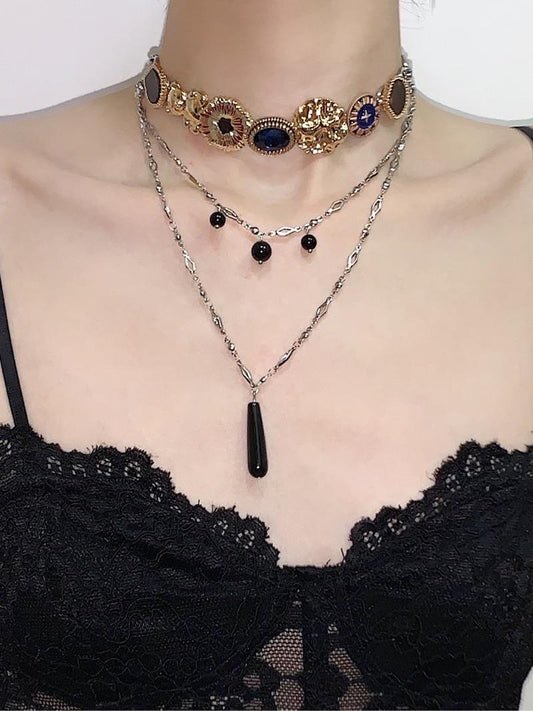 Black Golden Layered Tassel Choker