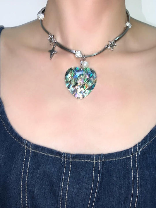 Heart Shape Abalone Shell Pendant Statement Choker