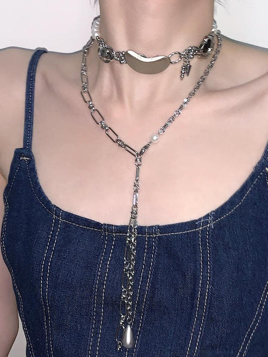 Black Silver Butterfly Tassel Choker