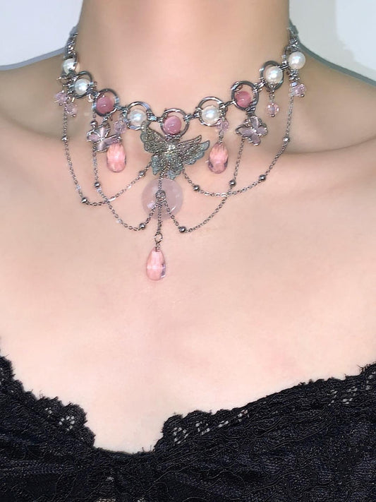 • Sakura Butterfly Tassel Choker