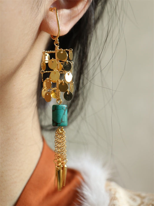 「Chinoiserie」Golden Fan Pearl Chandelier Earrings
