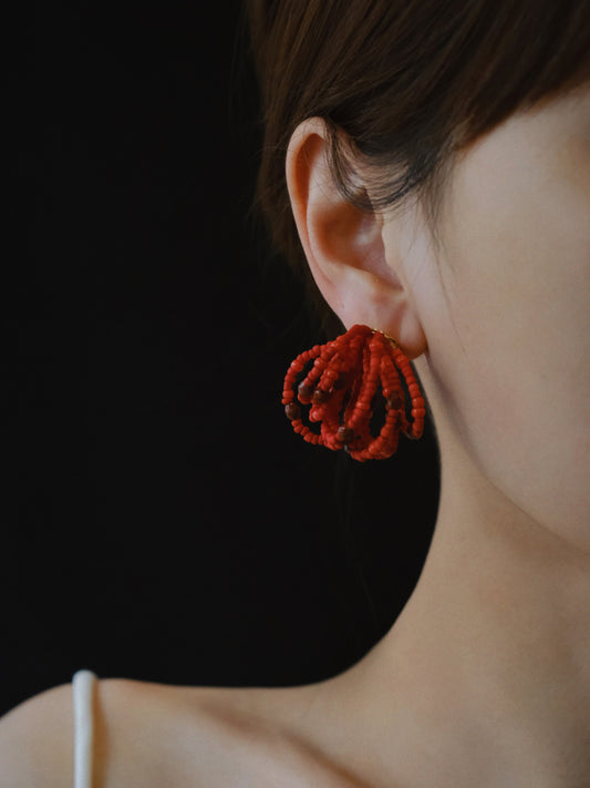 • 「Chinoiserie」Golden Fan Pearl Chandelier Earrings
