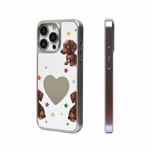 • Cosmic Heart Pup: Silver Mirror Rhinestone Case