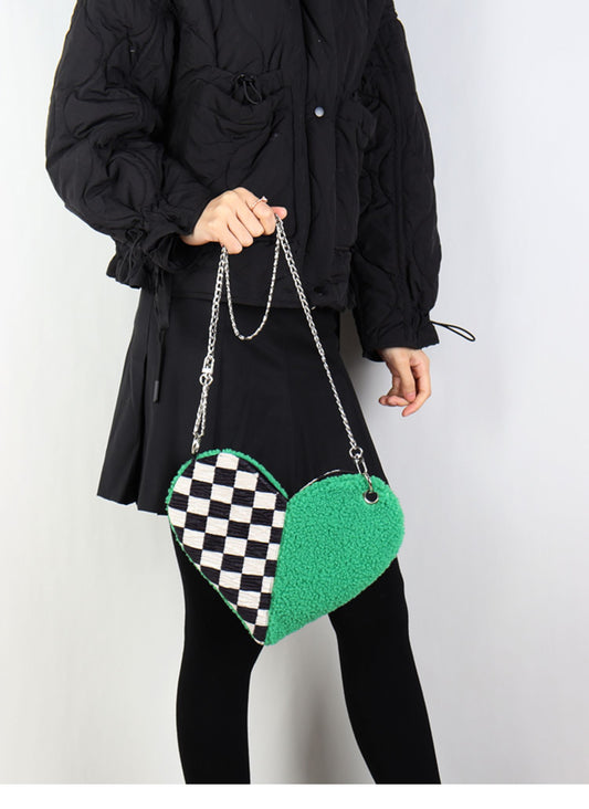 • Checkered Heart Shape Shoulder Bag