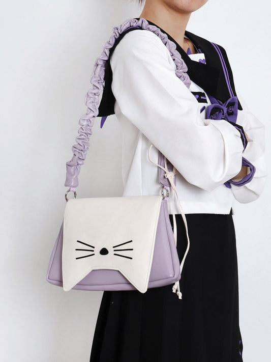 Purple Iris Chiffon Cat Bow Shoulder Bag