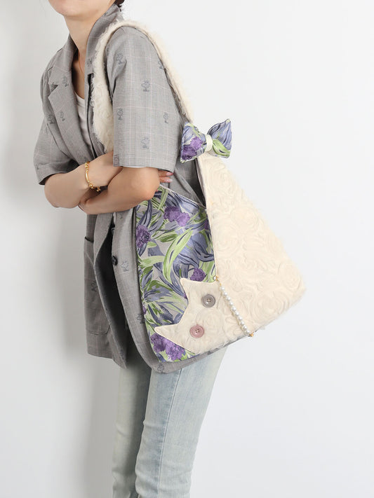 • Purple Iris Chiffon Cat Bow Shoulder Bag