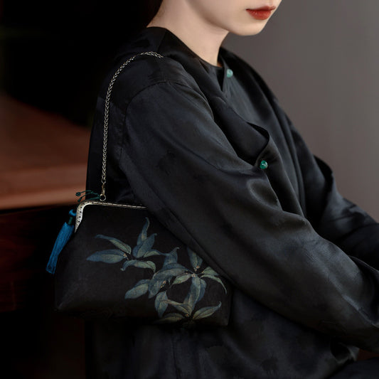 [Chinoiserie] Luxury Bamboo Leaves Silk Frame Clutch Bag