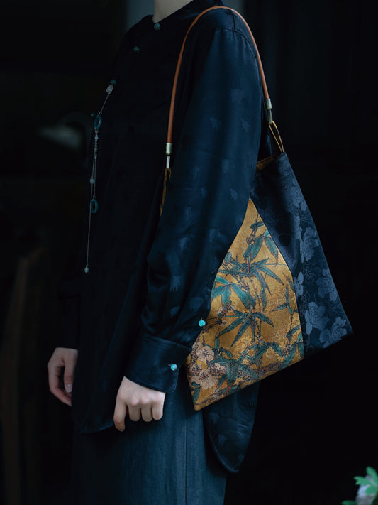 • [Chinoiserie] Luxury Bamboo Leaves Silk Frame Clutch Bag