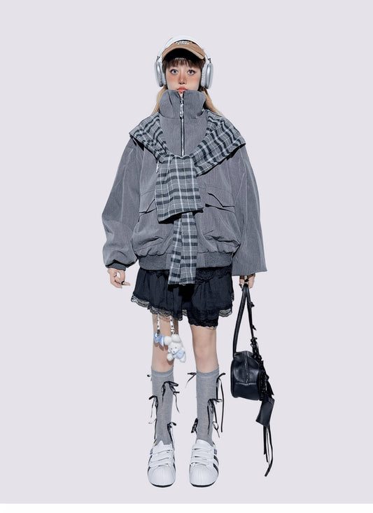 • Plaid Patchwork Sweet-Cool Baseball Jacket