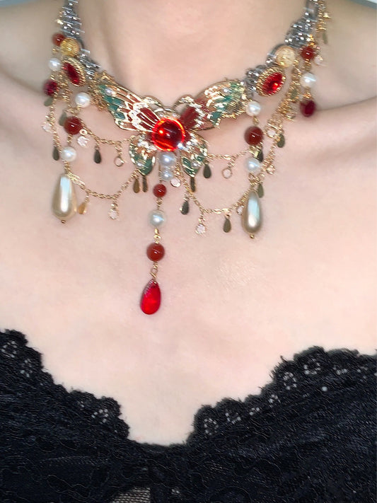 • [Chinoiserie] Butterfly Pendant Tassel Layered Necklace Waist Chain