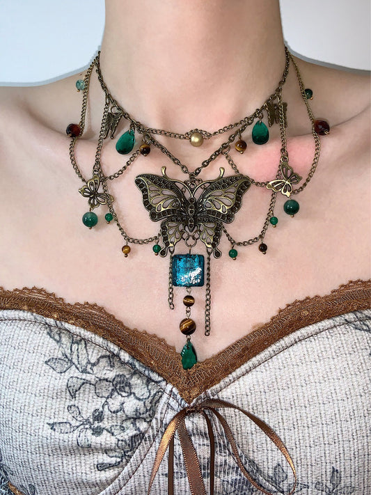 [Chinoiserie] Butterfly Pendant Tassel Layered Necklace Waist Chain
