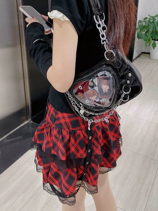 • Vanwalk Baby Cherry Plaid Lace Ruffle Shoulder Bag