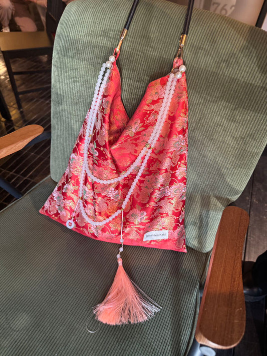 • Handmade Pink Black Satin Woven Shoulder Bag