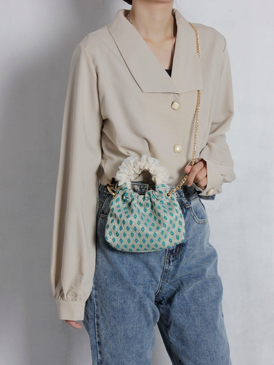 It's such a cute bag! The little red bell on the cat makes subtle noises when you walk. It's such a cleverly designed bag.